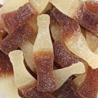 sirop de glucose, sucre, humectant (sirop de sorbitol), eau, gélatine, acidifiant (acide citrique, acide malique), correcteur d'acidité (malate acide de sodium, citrate trisodique), gélifiant (pectine amidée), arôme, sirop de caramel.