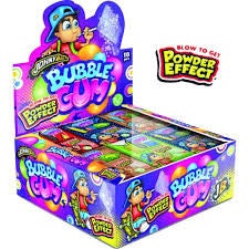 Buble gum goût Tutti-frutti en forme de crayon contenant de la poudre blanche.